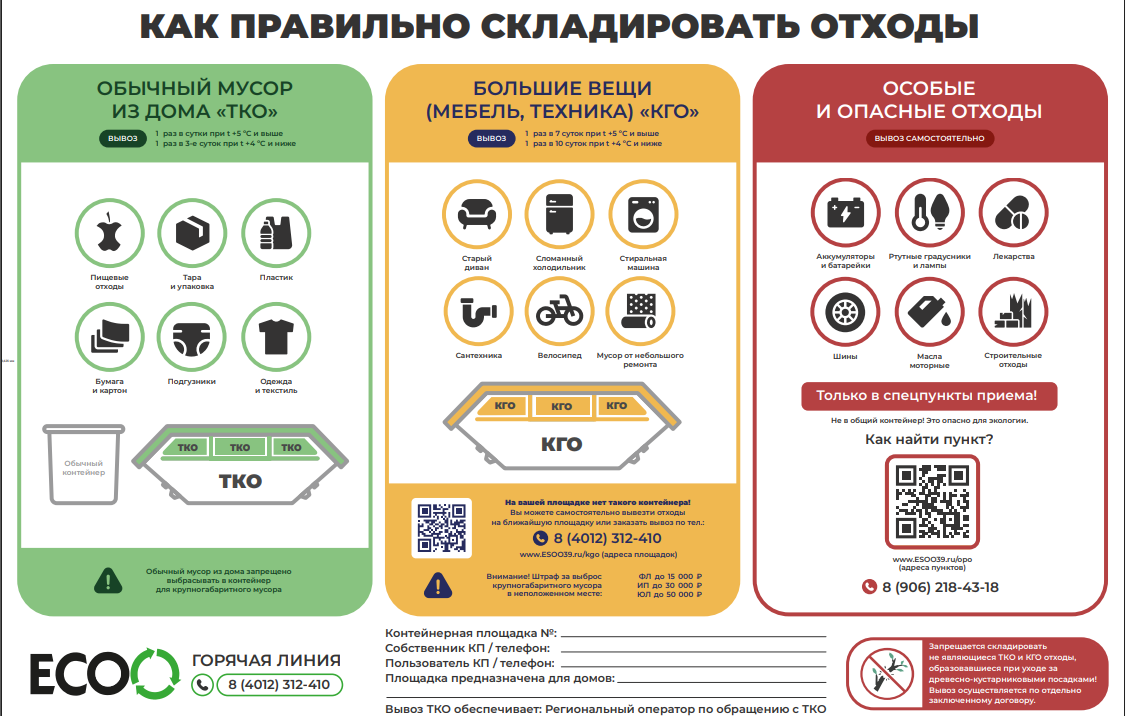 Информационные стенды содержащие информацию о порядке обращения с отходами.